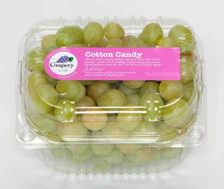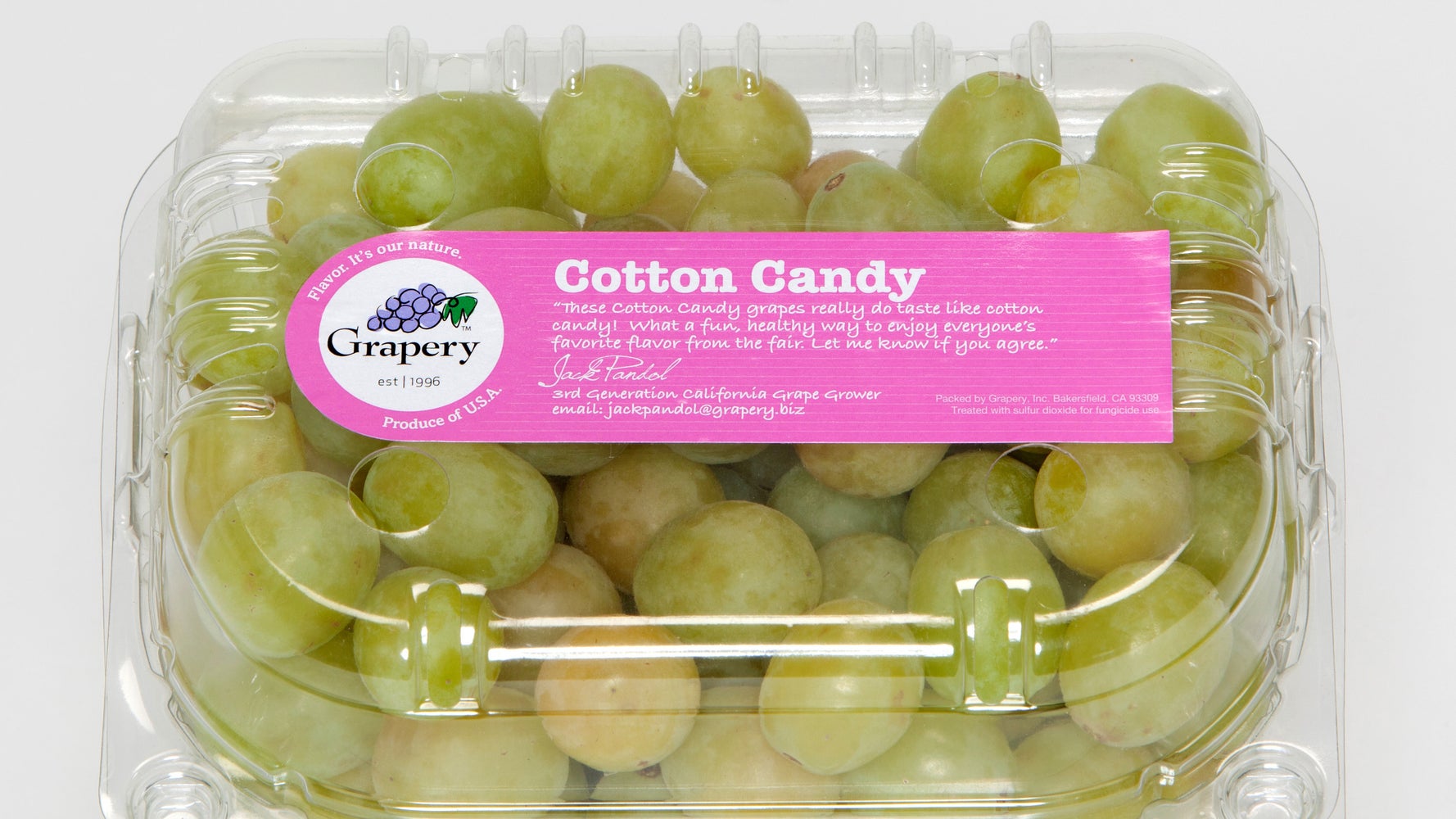 Cotton Candy Seedless Grapes. The patented crossbred grape that smells and tastes just like cotton candy is currently available in bulk and on sale possibly at your local Costco store. Make up 280 cones.