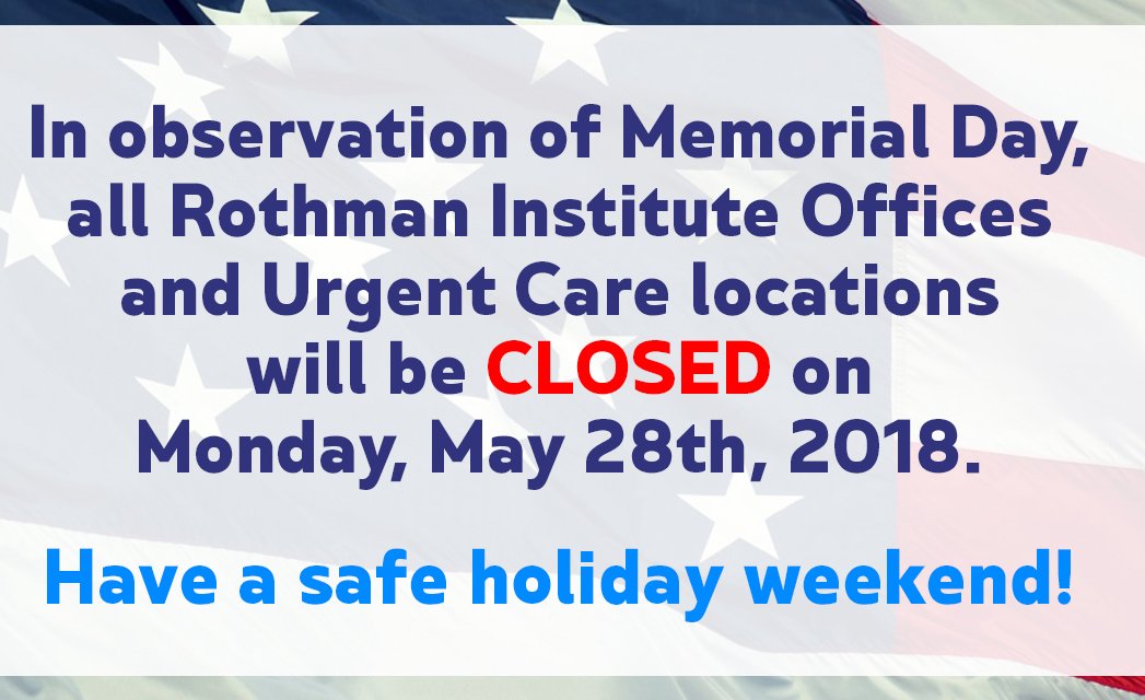 Rothman Orthopaedic Institute On Twitter Hours Notice All Rothman Institute Offices And Urgent Care Locations Will Be Closed On Monday May 28 In Honor Of Memorialday Please Note The Call Center Will